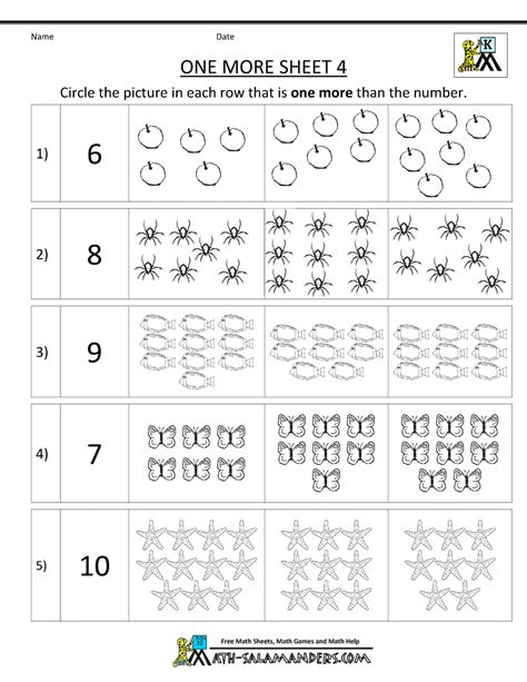 Kindergarten Math Worksheets Printable One More