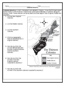13 Colonies Map Worksheet Answers Pdf