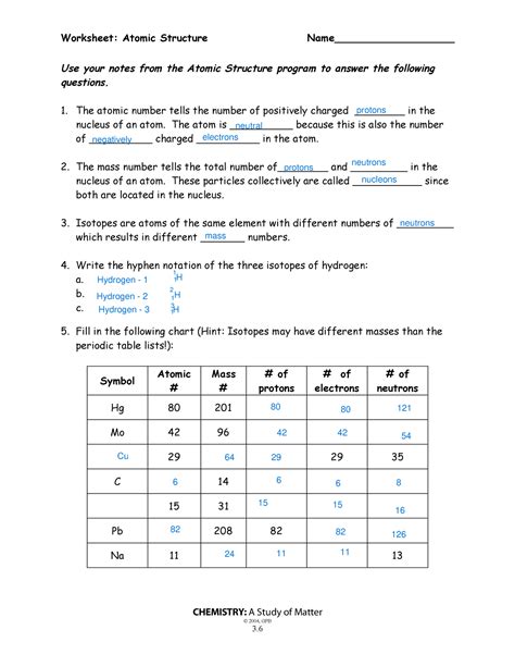 Answer Key For Atomic Structure Worksheet. What is the mass number, symbol, and charge of an ion that contains 35. Web atomic structure practice sheet 1 example problem: