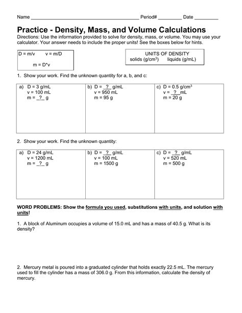 Density Calculator Worksheet. Web p = m v p = m v. Alexis wants to make a.