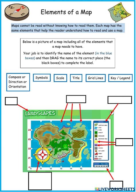 Elements Of A Map Worksheet. Students learn about direction, scale, symbols, labels, key or legend, and grid. Most popular first newest first.