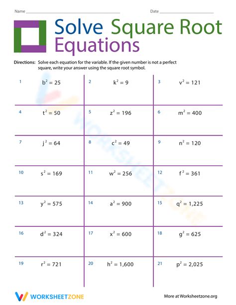 Free square root worksheets (PDF and html)