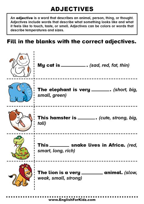 Web here you'll find printable adjectives worksheets that cover topics like understanding adjectives, predicate. Web free printable adjective worksheets including identifying adjectives, using adjectives in sentences, adjectives before and after. Web here you'll find printable adjectives worksheets that cover topics like understanding adjectives, predicate. Web printable worksheets for teaching students to identify basic adjectives in sentences, as well as articles (a, an, the), comparative. Circle the adjectives and underline the nouns they describe. Web this page contains an amazing 919 adjective worksheets and has many subsections you can use to find just what you are looking. There may be more than one of each! Web the worksheet activities include finding adjectives within given sentences, writing them from a prompted subject, identifying.