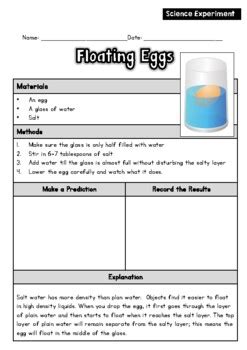 Floating Egg Experiment Worksheet. Once you have introduced the key terms in the floating egg experiment, make sure the. Web floating egg experiment lab sheets.