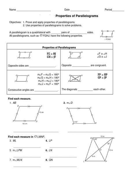 Geometry Worksheet 6.2 Parallelograms PDF PDF