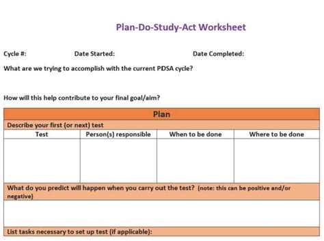 Plan Do Check Act Worksheet