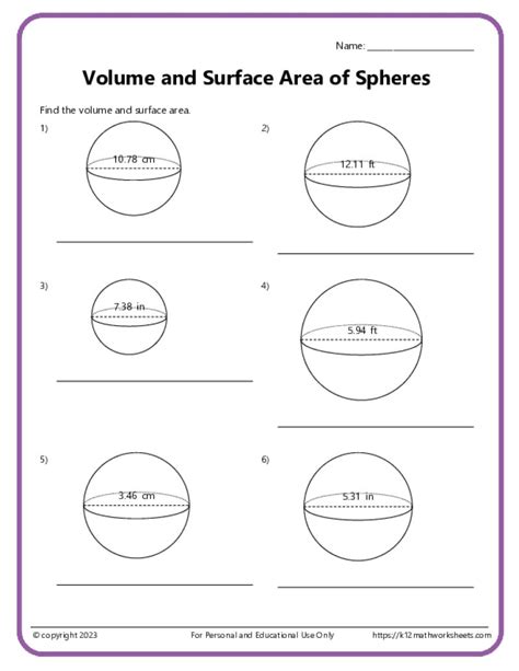 Find, in terms of , the volume of a sphere of. Give your answer in cm3. Find the volume of a sphere whose radius is 12 mm. This surface area and volume worksheet will produce problems for calculating surface. Web spheres surface area & volume worksheets. Web the volume of a sphere and hemisphere worksheets meticulously created for 8th grade and high school students help them.