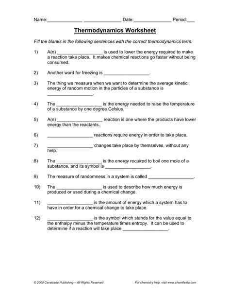 Thermodynamics Worksheet Answer Key Pdf