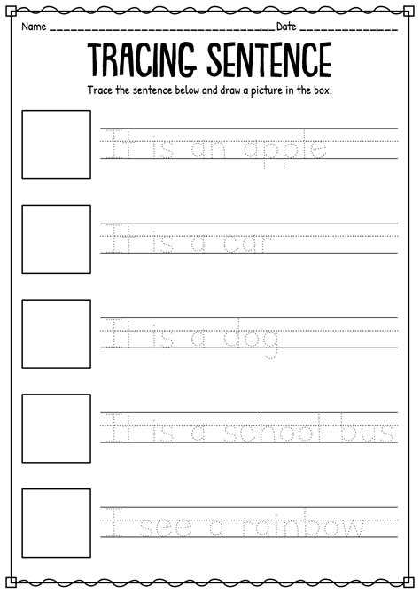Get ready to ignite your students' writing skills with these captivating sentence tracing worksheets. These worksheets ask students to look at a picture, read the sentence which relates to the picture and then trace the sentence. Making sentences (cut & paste, word cards, word banks) write sentences and draw. The intent is to reinforce the connections. Part of a set of early writing. Just enter in the text you want them to trace and click on the blue “regenerate” button. Students are asked to trace, complete and write a set of similar sentences based on pictures which are provided. Web calling all homeschoolers and teachers! Web with our sentence tracing worksheet generator, it’s easy to create custom worksheets for your child. Web read, trace and write sentences worksheet for preschool / kindergarten.
