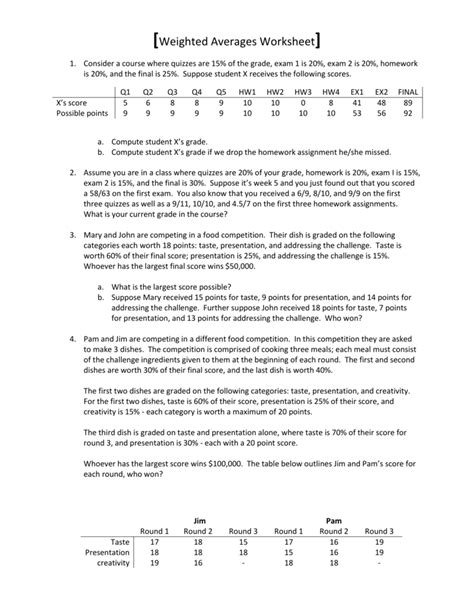 Mastering Weighted Averages Unlocking the Answers with our Worksheet