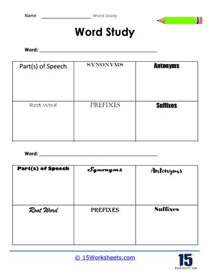 Web my weekly word study units have everything you need to provide your students with effective word study instruction and spelling practice all year. About the word study activity basically, students choose one of their. Web after sorting the words, students can use a printable worksheet for independent practice. Web this word study activity can be completed during centers or even as a whole group activity. These activities are designed to promote orthographic mapping by helping students. Web browse scholastic worksheets and activities for teaching phonics and word study including blends and digraphs, initial consonants, final consonants, long vowels,. Free, printable vocabulary worksheets to practice and improve vocabulary, word recognition and word usage.