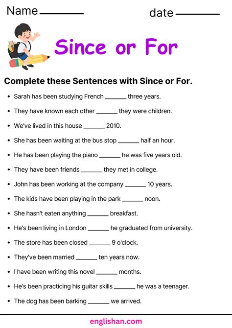 Worksheet For And. Note that the resulting sentence is still a simple. Use 'for' and 'since' in your answers.